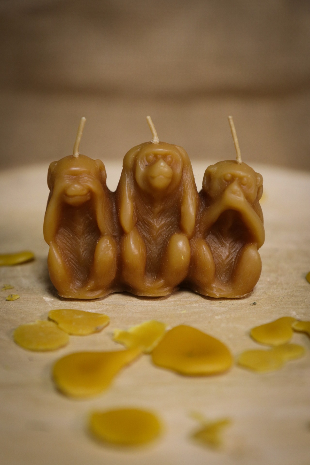 Méhviasz gyertya 3 majom 5x7cm
